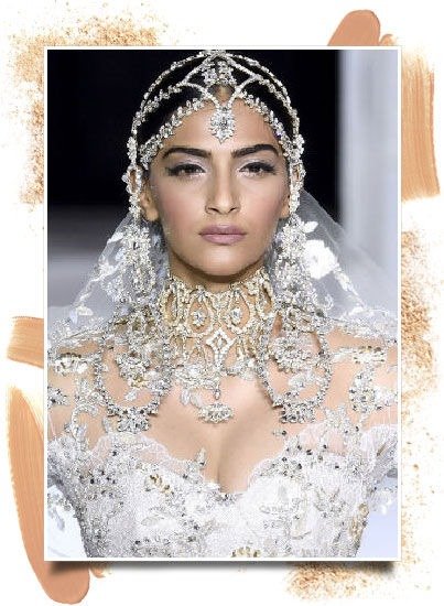 Fusion of traditional and contemporary bridal makeup.