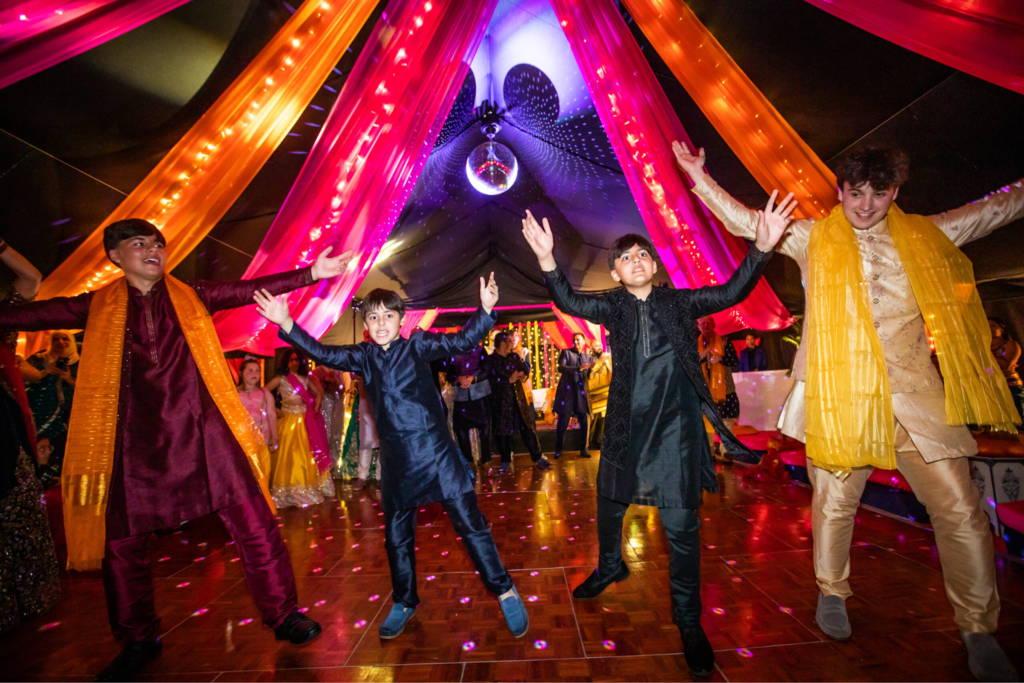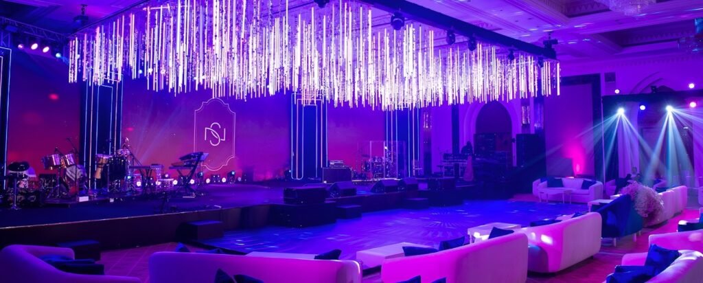 An LED dance floor adds a modern and high-energy element to the Sangeet. It transforms the stage into a vibrant performance space.