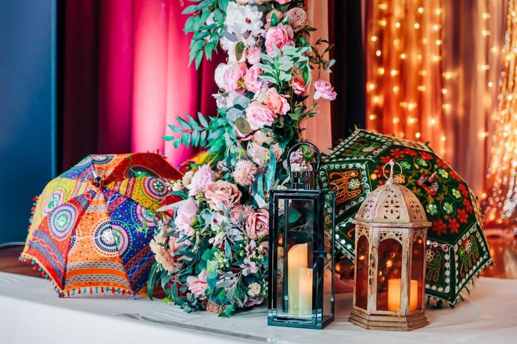 A traditional theme celebrates Indian culture with marigold décor, vibrant fabrics, and cultural elements.